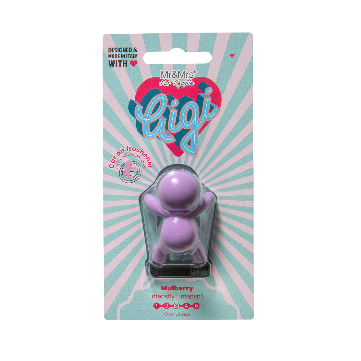 GIGI es el ambientador de Auto de forma suave y acogedora, que recuerda la alegría de vivir y la energía positiva típica de Italia.