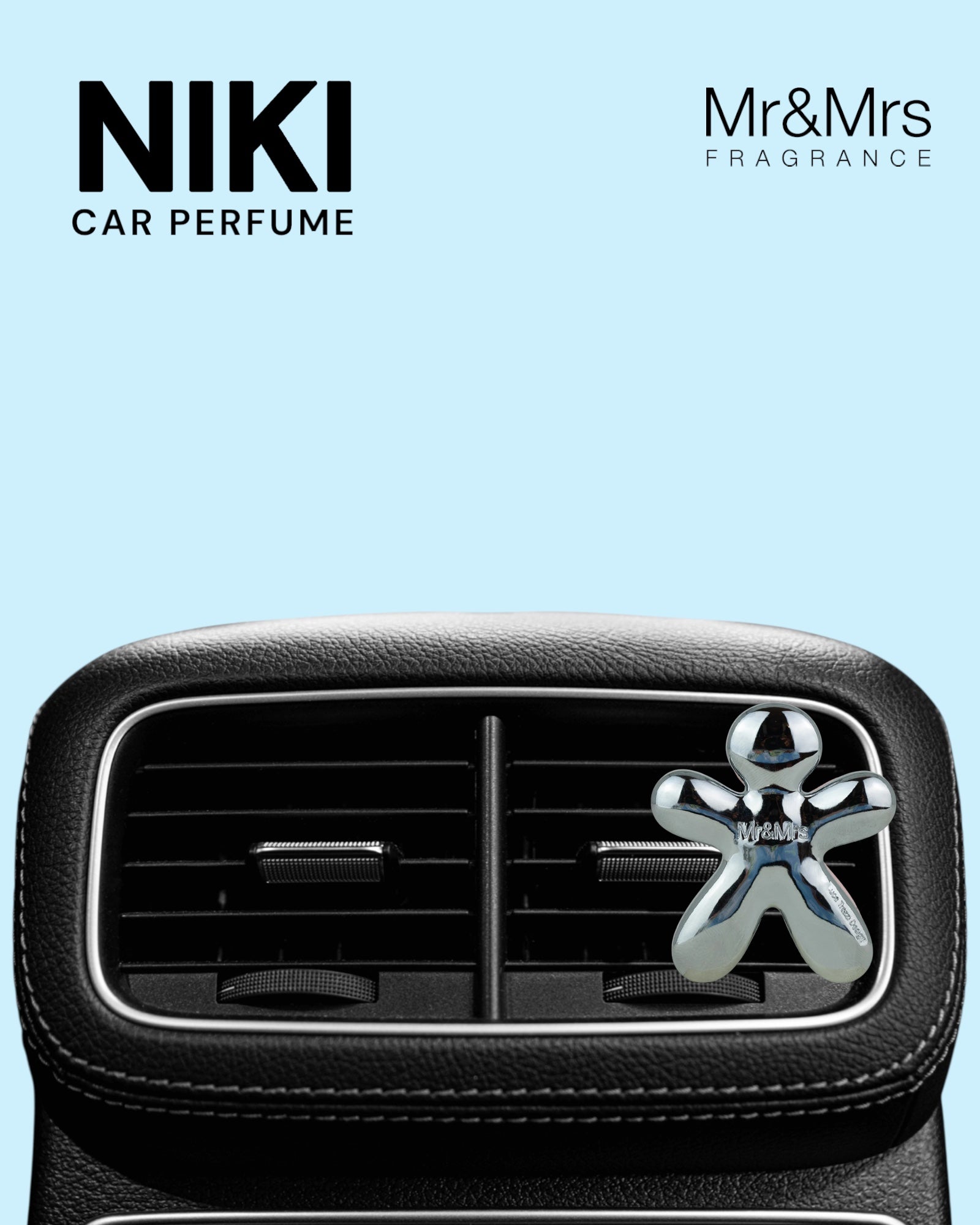 Compuesto por una funda de ABS y una recarga perfumada de EVA, que se pone en el ventiladorNiki lleva la elegancia del Made in Italy directamente a tu auto.