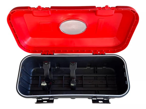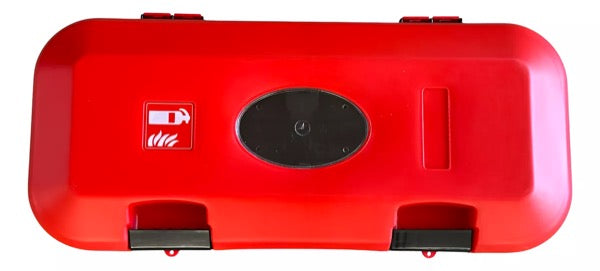 Porta extintor apto para cilindros de 6Kg a 9Kg, fabricado en plastico ABS y visor de verificación transparente.